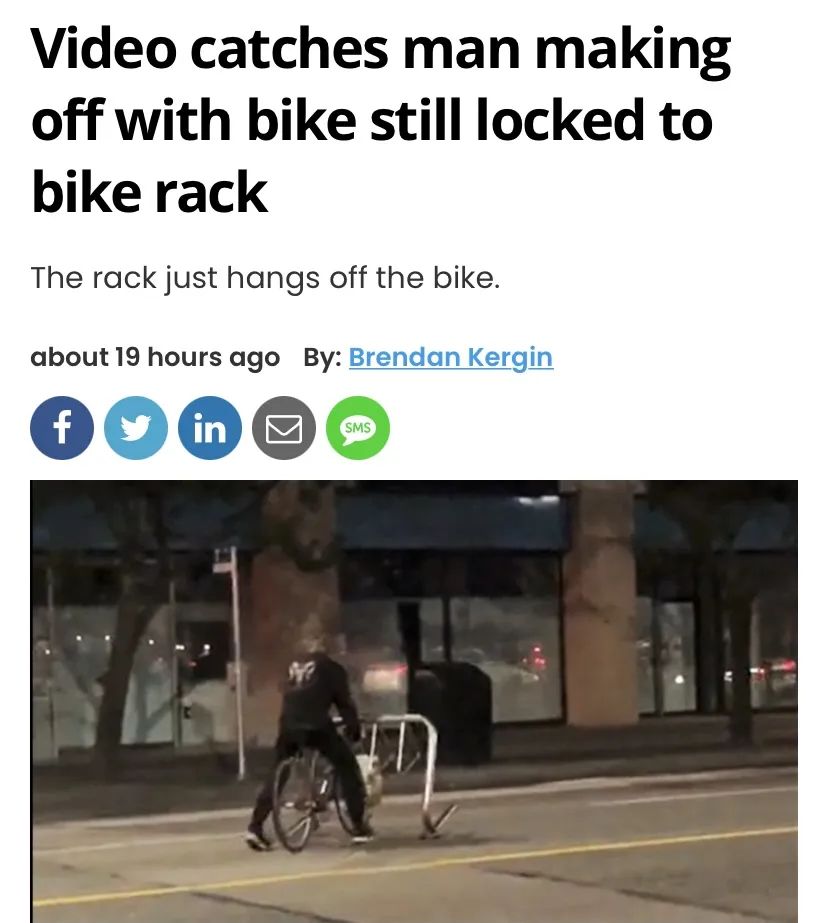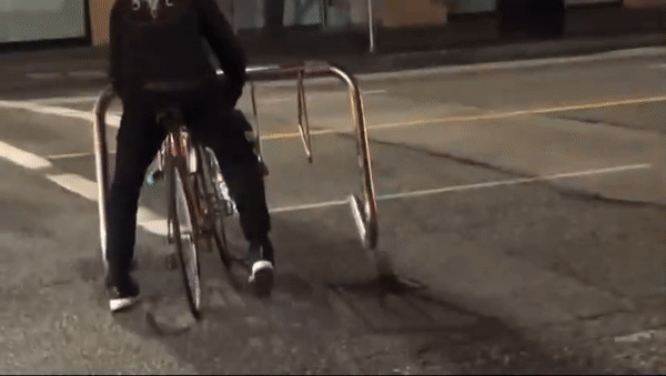 据说当时路边有人大喊说:“大兄弟!我们都看见你了啊!”(”My dude, we can all see you!”)但这位猖狂的大兄弟,还是就这么默默的偷走了自行车……