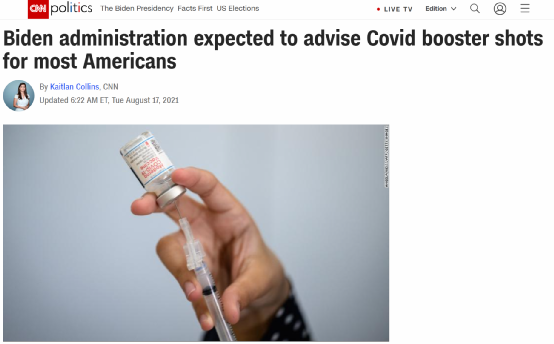 此前,美国FDA已授权为部分免疫功能低下的人群接种第三针新冠疫苗,而在FDA授权后,美国疾病控制与预防中心几乎立刻就给第三针放了行。CNN称,鉴于卫生保健工作者及养老院患者是首个接种新冠疫苗的人群,因此当美国宣布全民接种第三针后,这些人也将会排在第一个,而下一个则是在此前的接种中排在前列的老年人。