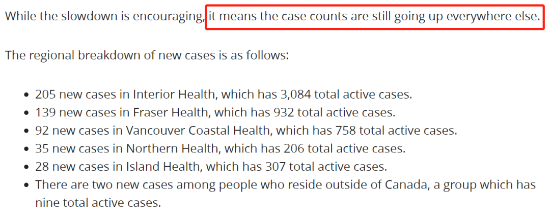 这并不是什么好消息——CBC称,这意味着其他几个地方的病例数仍在上升。