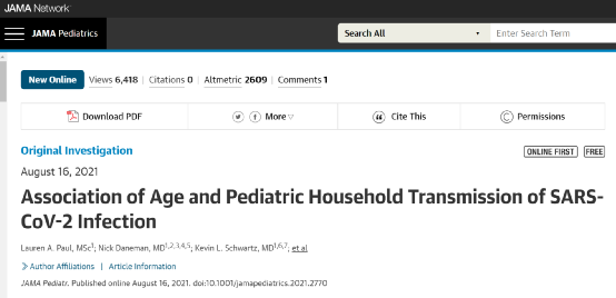 相关研究论文现已于16日发表在医学期刊JAMA Pediatrics上。该研究分析了2020年6月1日至12月31日期间从安大略省6280个家庭收集的数据。这些住户中有1717户(27.3%)经历了二次传播事件,意味着家中至少有一个人在最初病例的前两周感染了新冠病毒。