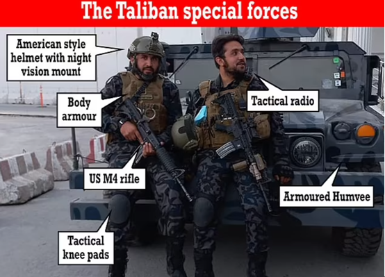 英国《每日邮报》网站还称,目前还不清楚这些装备是从何而来,但似乎是美制装备和阿富汗部队所使用的装备的组合,报道推测很可能是在西方从阿富汗撤军时缴获的。