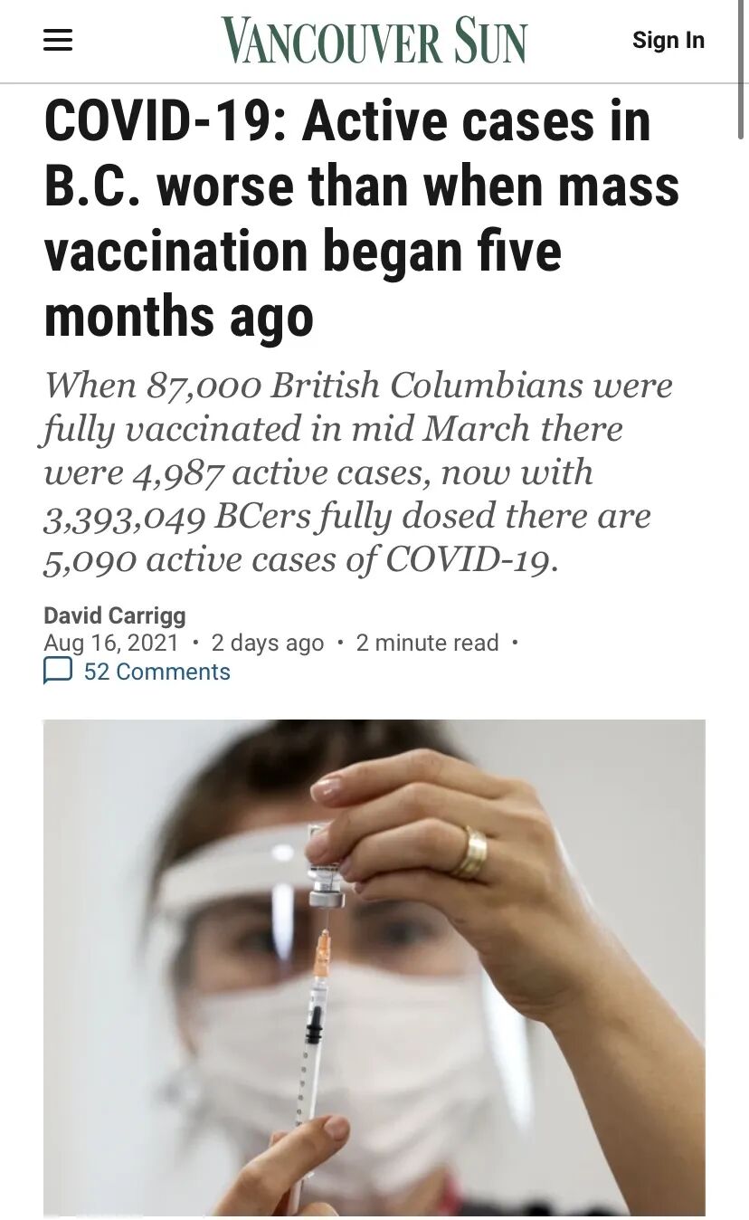 3月中旬,BC省只有87,000人完全接种了疫苗,当时有4,987例活跃病例;而现在有 3,393,049人完全接种了疫苗,却有5,090例活跃病例!这疫苗打了还不如不打?还是说,一看疫情好转就嗨过头拼命解封的省政府,觉得抗战已经结束,大家可以享受胜利果实了?