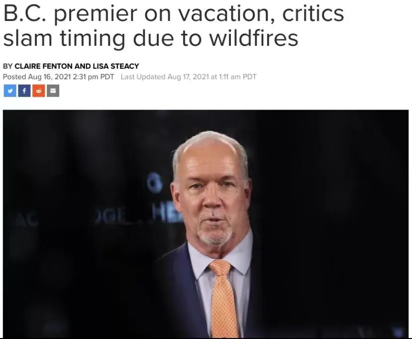 不仅如此,在这个BC省被疫情和山火双重夹击的当下,省长贺谨还正和家人在外省度假。