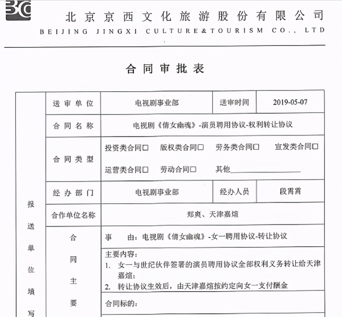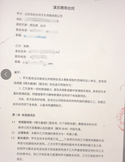 为了让片酬符合标准,杜月和周征源作为《倩女幽魂》的核心制片人,代表世纪伙伴与郑爽签了77天4800万的演员片酬合同。