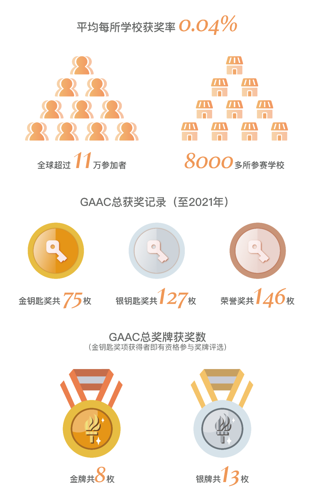 该美国国家级艺术大赛的所有参赛作品都会先接受区域性奖项评选,包括金钥匙,银钥匙,荣誉奖;每个地区的金钥匙获奖率低于5%,然后获得金钥匙的同学们会晋升到国家级全国评选,竞争占比不足1%的国家级艺术金牌和银牌。