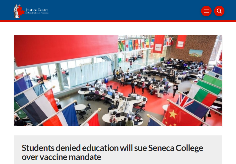 司法中心将表示他们目前正在代表这两名学生准备诉讼。司法中心工作人员律师Allison Pejovic说:“司法中心正在代表这些学生准备对Seneca College提起诉讼,积极捍卫他们的宪章权利。Seneca College的政策不仅违宪,而且没有根据科学基础来制定。正如疾病预防控制中心承认,完全接种疫苗后的感染者会携带大量的病毒,可以将疾病传播给他人。”