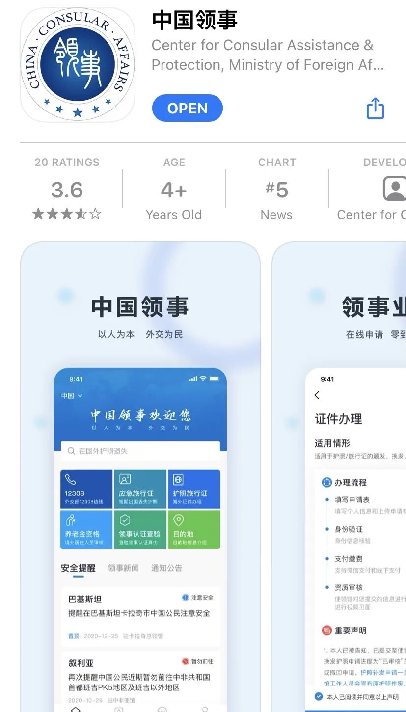 “中国领事”APP的领取养老金资格认证、领事认证查验、领事新闻资讯、领保服务(含12308一键呼叫)等功能已于今年5月31日正式启用。