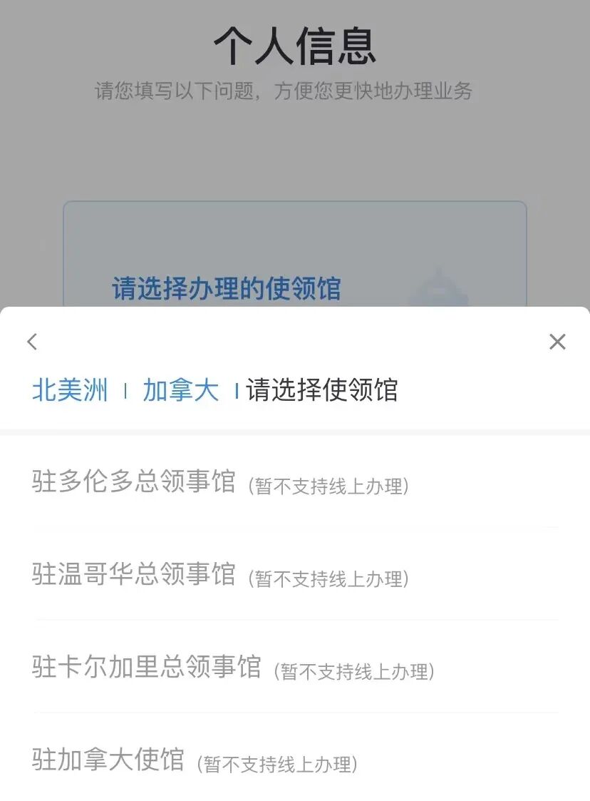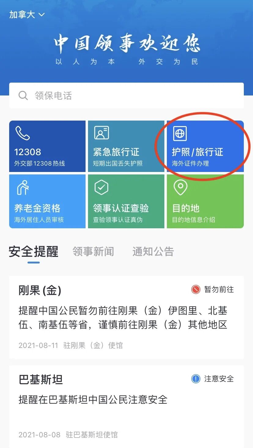 2、从9月3日起,原本的“海外申请护照在线预约系统”在驻加使领馆停止使用,所有护照、旅行证、领取养老金资格认证业务原则上均将通过“中国领事”APP申请办理。
