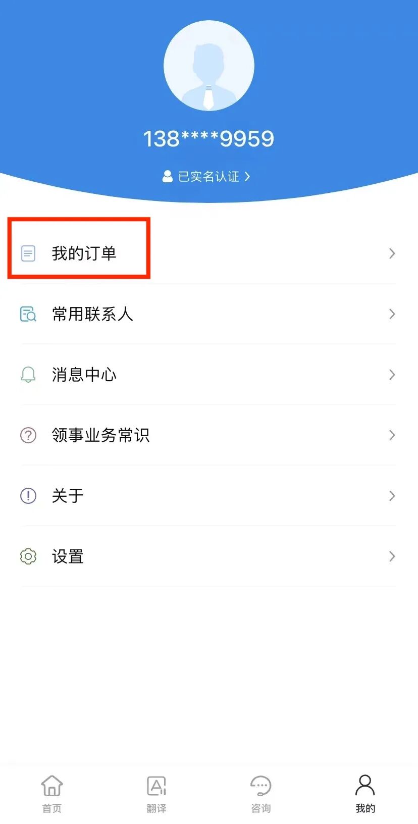 3、提交订单:完成上述步骤并成功提交订单后,相关申请将提交给领馆审核。申请人可在“我的订单”或“消息中心”跟踪办证进度,领馆工作人员将及时通过APP反馈审核进展,并视情况在APP中留言要求补充上传材料或修改信息。
