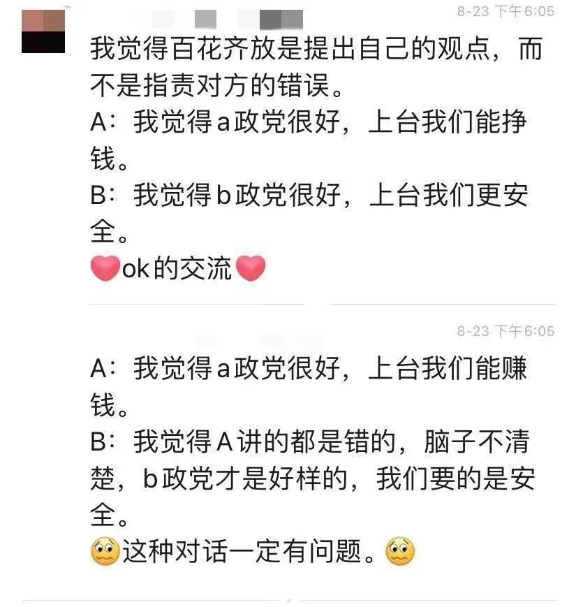 - B:我觉得A讲的都是错的,脑子不清楚,b政党才是好样的,我们要的是安全。