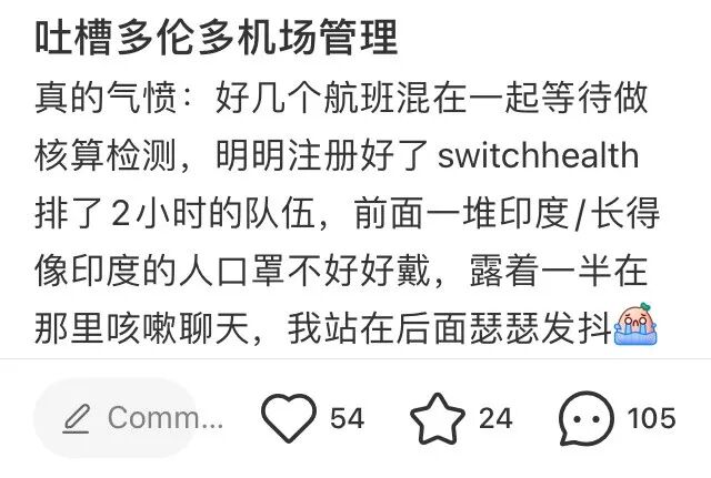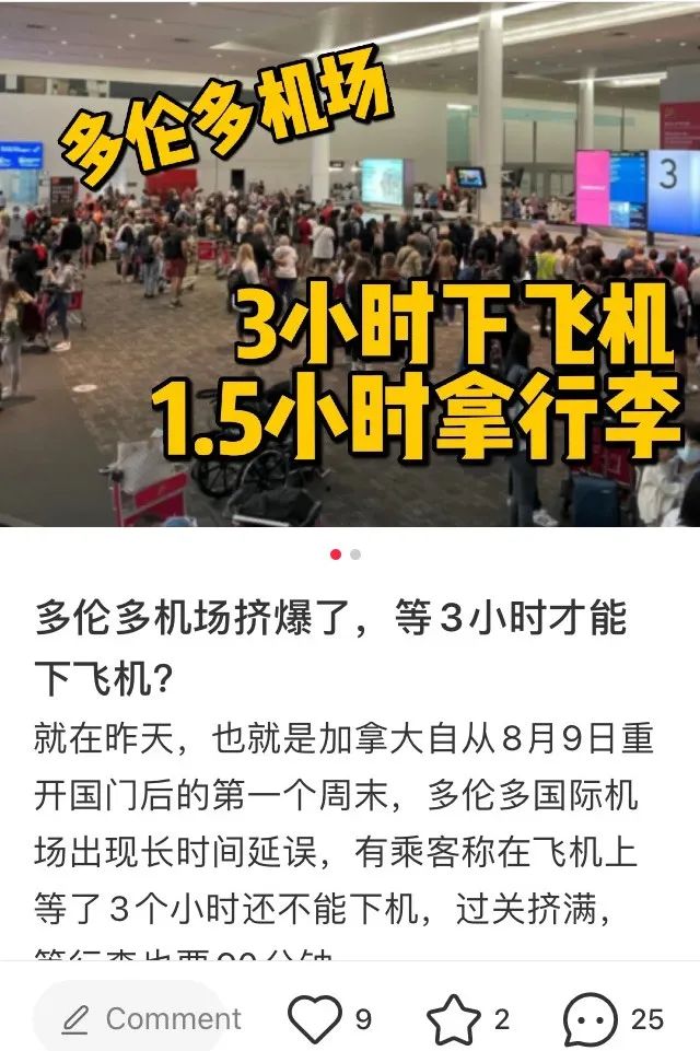自从加拿大放宽边境政策以来,多伦多机场的拥挤问题再次爆发,也引来一众华人网友吐槽: