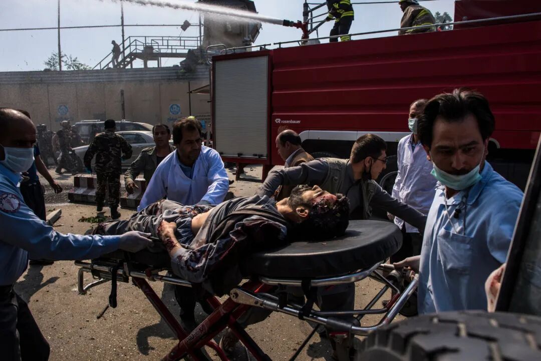 据路透社援引一名现场目击者的描述,当天下午大约5点,他在机场大门附近大约排了10个小时的队,等候一架撤离班机,直到下午5点左右,一声巨大的爆炸声响起。然后他看到此生难忘的末日景象,人的身体像被狂风卷起的塑料袋一样漫天飞舞……