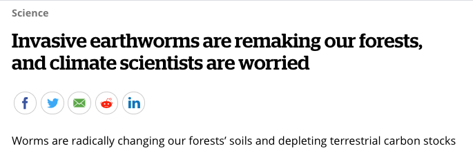 现在,引起气候学家极大关注的是,侵入性蚯蚓正在迅速向北扩展它们的活动范围。