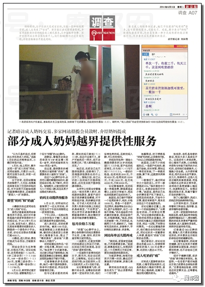 中介不时的爆出奶妈们的踪迹,供各个城市的男性选择: