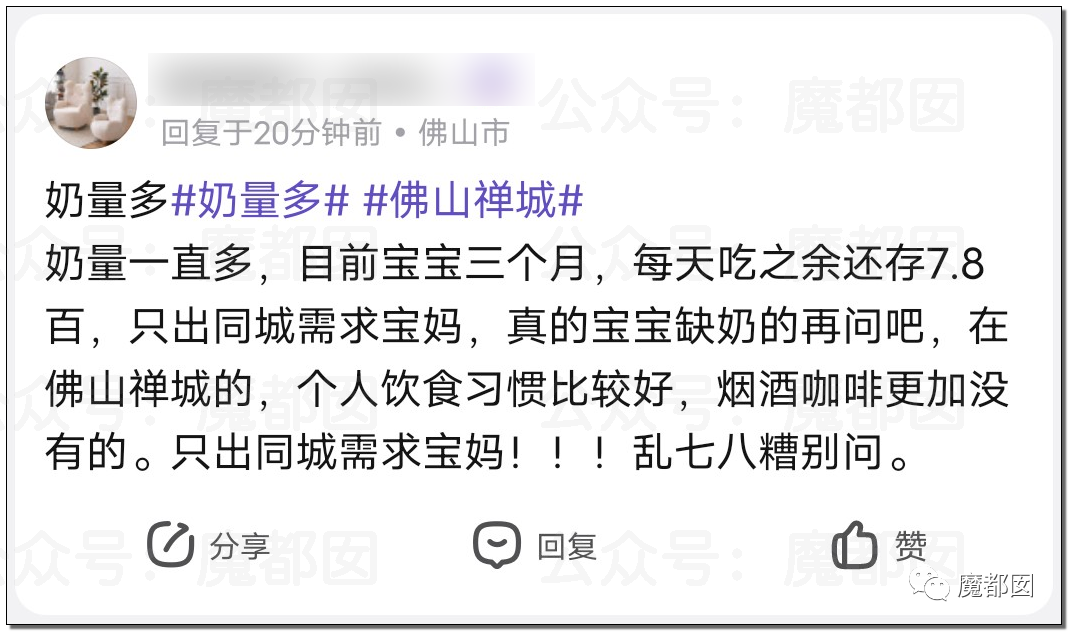 我们有点不大相信,然后自己去截图看了下,还真的是这样……哪里是交流分享经验心得,完全就是一个人奶市场了……我们大致给他们分3类(以下截图都是我们自己去截的图):