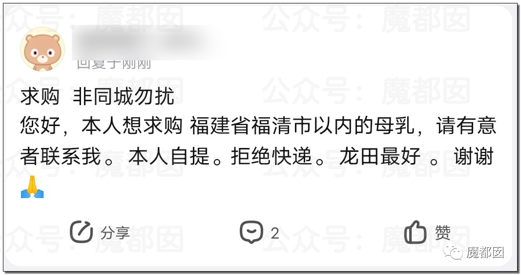 但是,事实上,我们也发现了一个很奇怪的现象,很多人似乎并不是为孩子求奶,而是为自己……