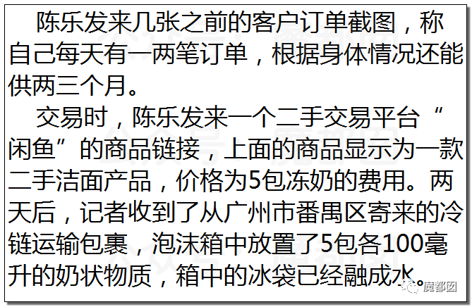 可以想象,除兜售冻奶外,人乳交易中还存在着“成人奶妈”的乱象。