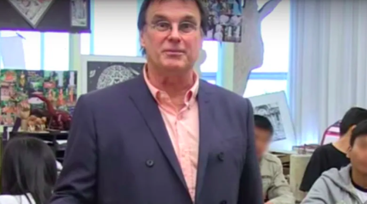 又在另一次艺术课上,侧身拥抱了另一名女士,并把双手放在她肩膀上,还在查看她的作品时抚摸她的背。他还对这名女生说,“如果你能像我女儿一样说西班牙语,