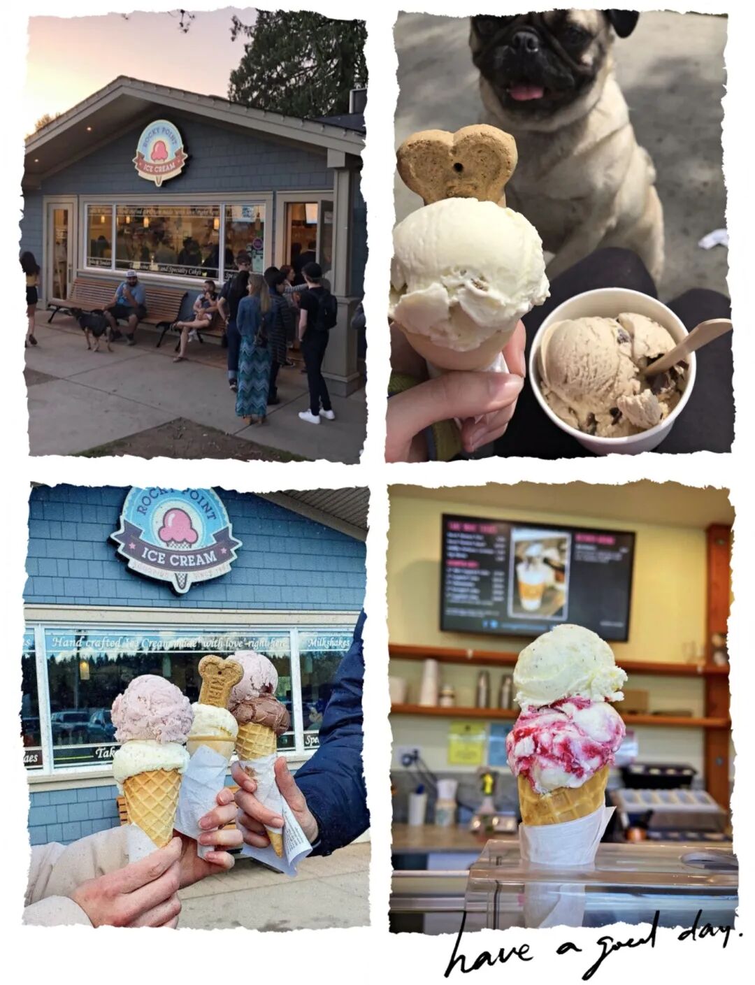 冰淇淋分奶香四溢的美式、清爽宜人的意式、健康美味的纯素式和狗狗专属(你馋你也可以吃)的Doggie Cone。