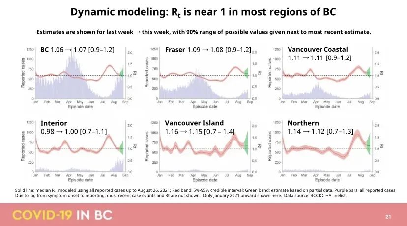BC省卫生官员表示,有理由保持乐观。相比于7月底的1.5,新冠病毒在本省内的繁殖率(衡量每个新病例引起多少额外感染的指标)已回落至现在的1.1——这意味着每个新冠患者平均会感染一个人。而由于卫生限制的重新收紧、口罩令的回归以及疫苗接种人数的上升,省政府认为,这项指标有希望继续下降。