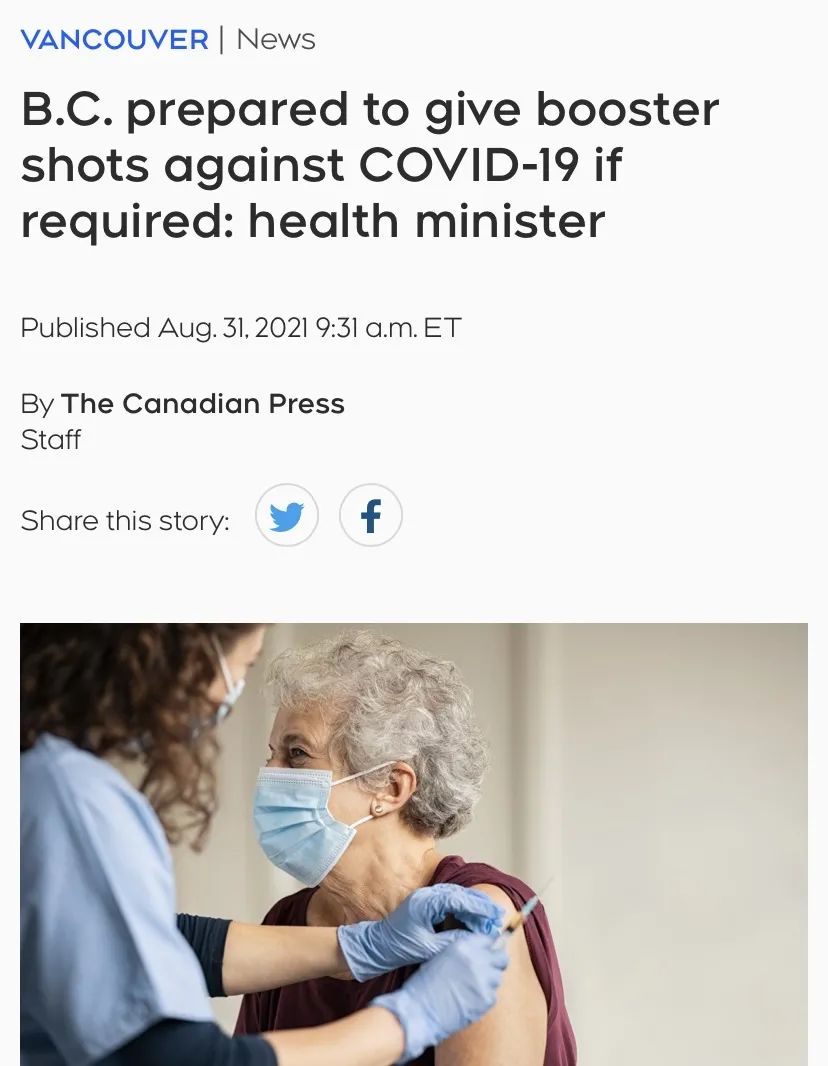 魁省公共卫生研究所也在8月30日发布通知称,由于接种两剂疫苗对于某些人群的保护力是不够的,应考虑增加一剂加强针。