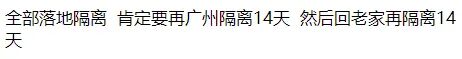 也有网友表示:需要广州隔离14天,回老家再隔离14天