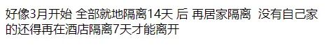 入境人员:“14 天集中隔离+14 天居家隔离”