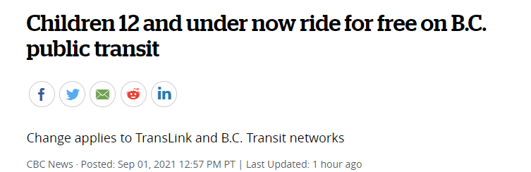 所以说,从此家长带孩子坐公共汽车、天车、海上巴士(Seabus)和西岸快车(West Coast Express),就不用给小朋友付车费啦。