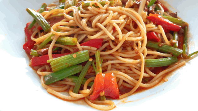 天山美食的炒米粉也有所不同,对口味稍轻的小伙伴简直太友好~没有辣到昏天黑地,就是友好的酱辣味,刚刚好粗细的米粉,刚刚好挑逗起来的味觉,刚刚好鲜嫩的牛肉丝和清新的芹菜,刚刚好嘶溜一口就滑到嘴里,一切都是那么刚好~