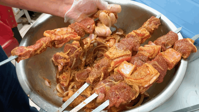 天山美食的羊肉串体积也是大得惊人!