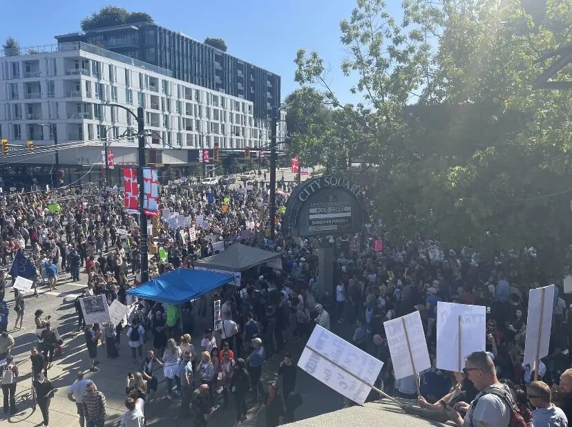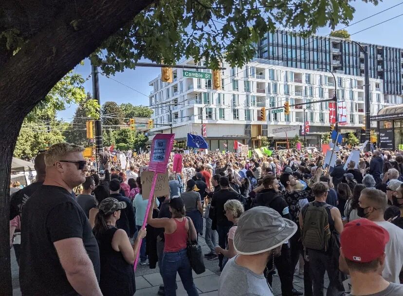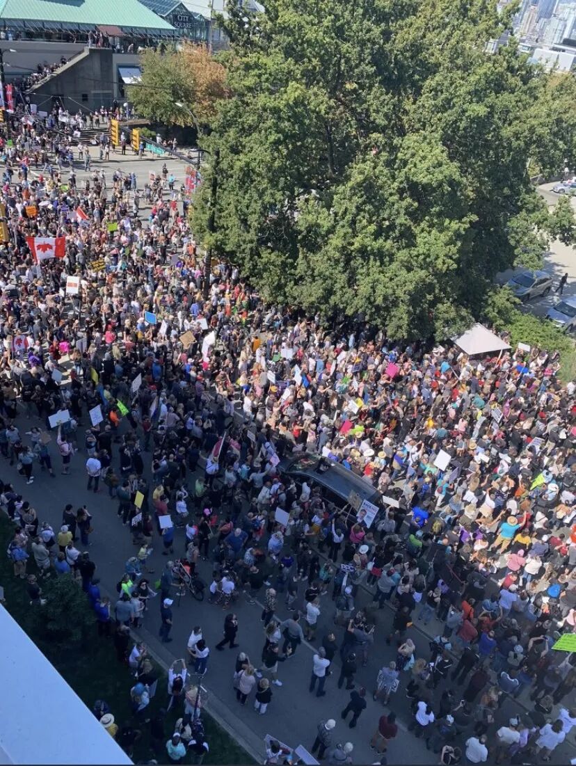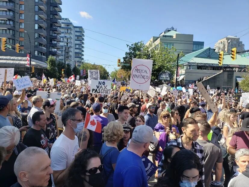 除了温哥华,还有数千名抗议者同一时间聚集在基洛纳、坎卢普斯、维多利亚、乔治王子城、纳奈莫等其他城市的医院外,高呼口号,示威游行。安省、魁省、阿尔伯塔省等也未能幸免。在9月1日的加拿大,同一时间竟然有10个省份的数座城市都陷入了这场反疫苗活动的骚乱中。