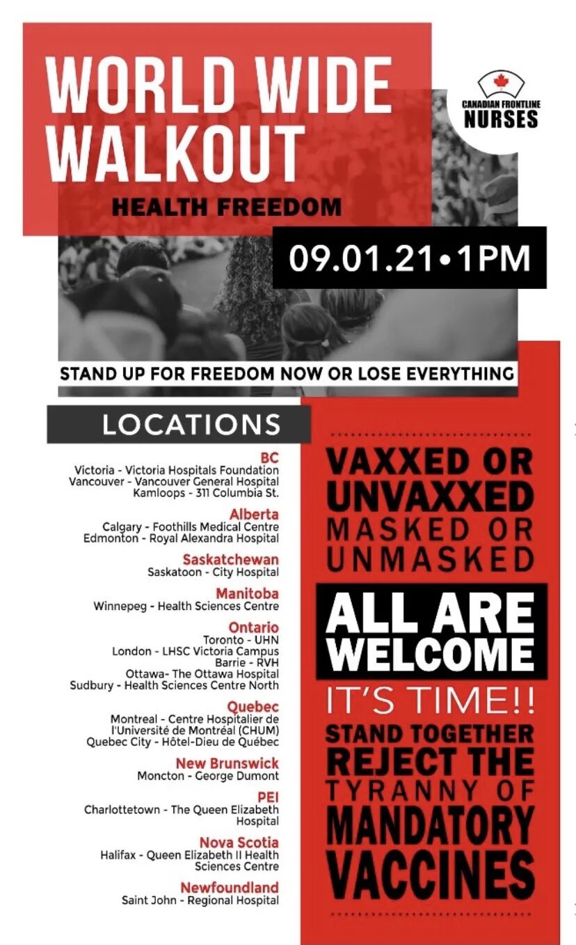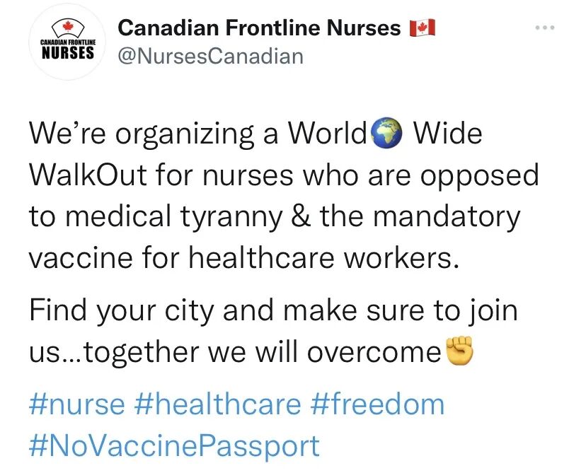 这场规模浩大的抗议示威活动被称为“全球罢工”(worldwide walkout),由一个叫“加拿大前线护士”的组织发起。