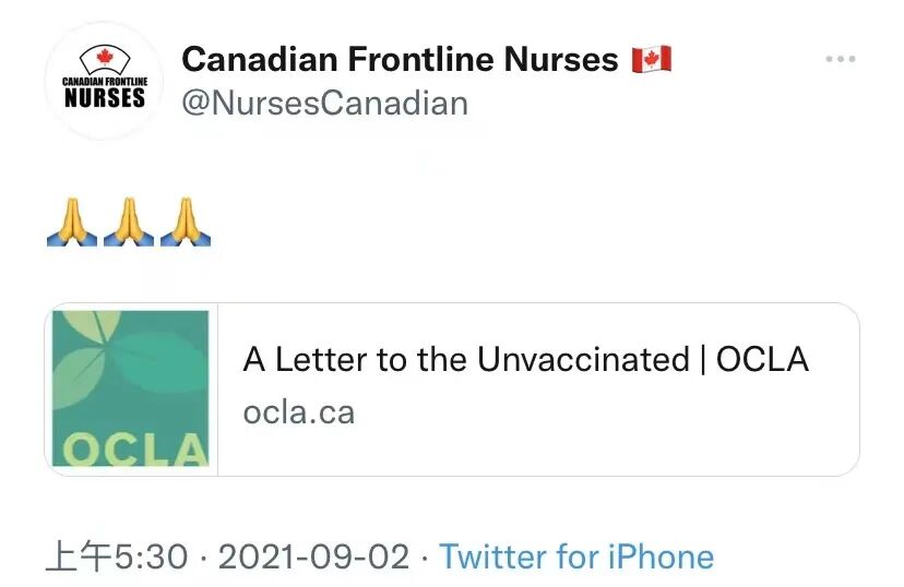 温哥华急诊医师Navdeep Grewal说,抗议活动的场景让她泪流满面。“这是对医务人员极度的不尊重和侮辱。” “我们现在正在挽救的感染者,都是那些未接种疫苗的人。”