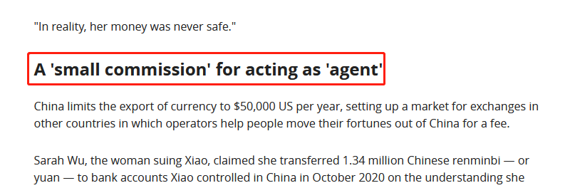 Xiao否认了这些指控,表示Wu试图让自己对“那些转出中国的钱”负责。Xiao称Xu Dong Liu此前告诉她,Wu的钱卡在一个被香港执法部门冻结的货币兑换银行账户里,Liu和她的商业伙伴在转账时遇到了问题。