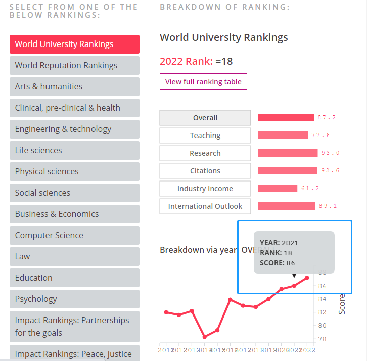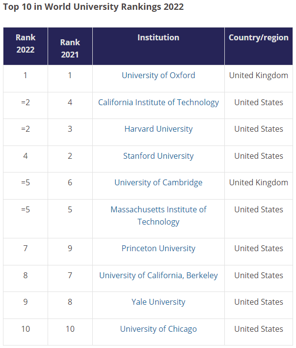 就在今天(9月2日),《2022年泰晤士全球大学排行榜 (Times Higher Education World University Ranking 2022)》出炉了。