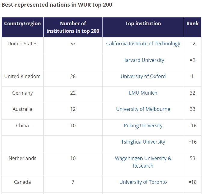 最新排名显示,“拥有排名前200大学数量国家”排名中,美国仍位居第一,总计57所大学排名全球前200。其次为英国28所,德国22所,澳大利亚12所。而此次中国与荷兰并列,都有10所高校,超过加拿大的7所。