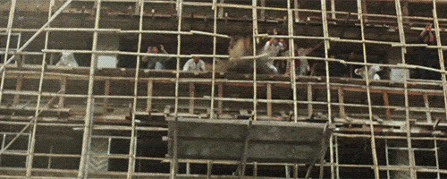 《A计划》里,成龙从钟楼顶掉到地上,扶着腰哀嚎“原来真有地心引力呀”的那场戏,是找了体重差不多的“成家班”成员火星先来做“人肉实验”,从四楼坠落,撞破下面的两层遮阳布,掉到地上。“不知道用几层布合适,一看你还没死,大哥(成龙)就来(自己上)了。”