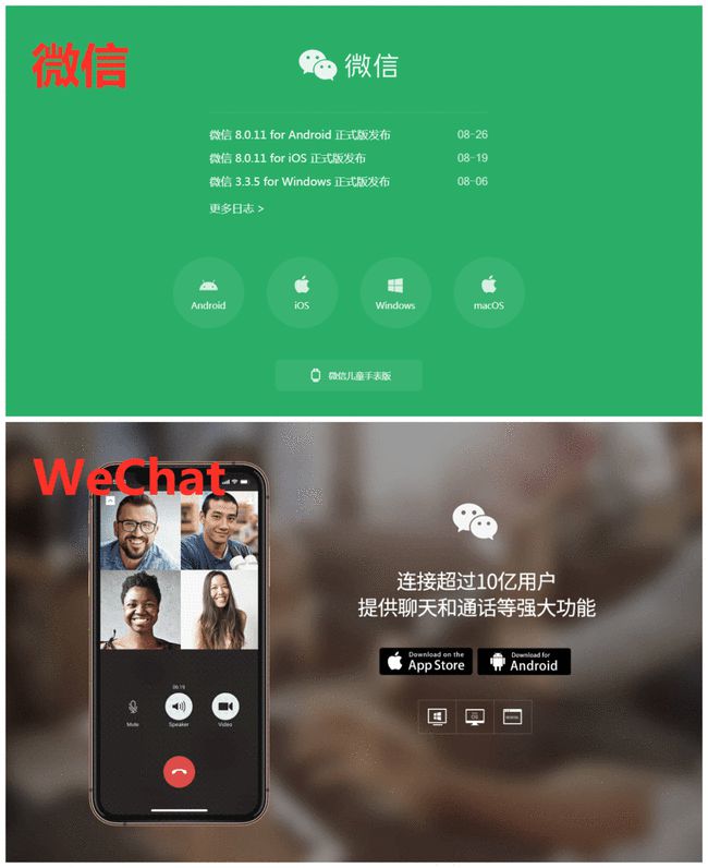 如微信签约的主体是深圳腾讯,欧洲版WeChat由Tencent international Services Europe BV运营,而在中国香港的WeChat则是由WeChat International Pte运营。而且它们的官网也不同,微信的域名是 weixin.qq.com,而WeChat 域名是 www.wechat.com。
