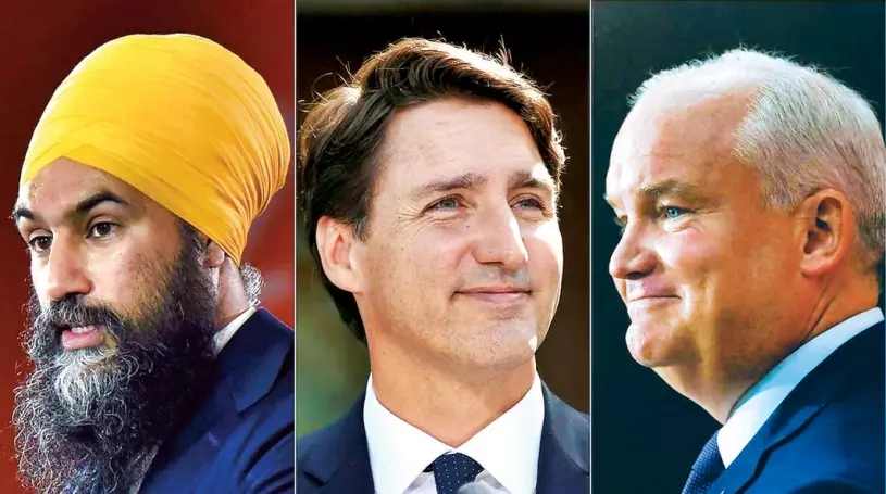 ■左起:联邦新民主党党领驵勉诚、自由党党领杜鲁多、保守党党领奥图尔。星报资料图片■左起:联邦新民主党党领驵勉诚、自由党党领杜鲁多、保守党党领奥图尔。星报资料图片