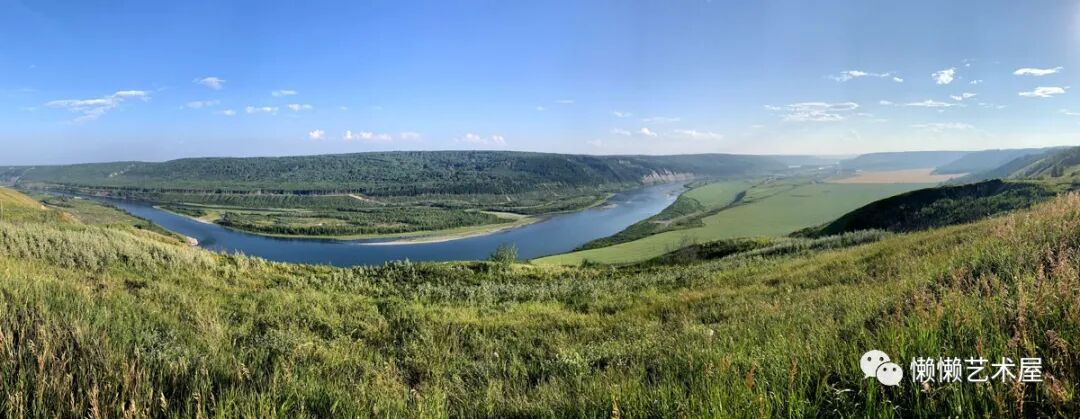 哈德森霍普镇博物馆和前面看过的许多文物保护建筑相仿,但是博物馆后面草地的景观却极为惊艳,超出想象。和平河(Peace River)在山谷中,水分两系,中有绿洲。