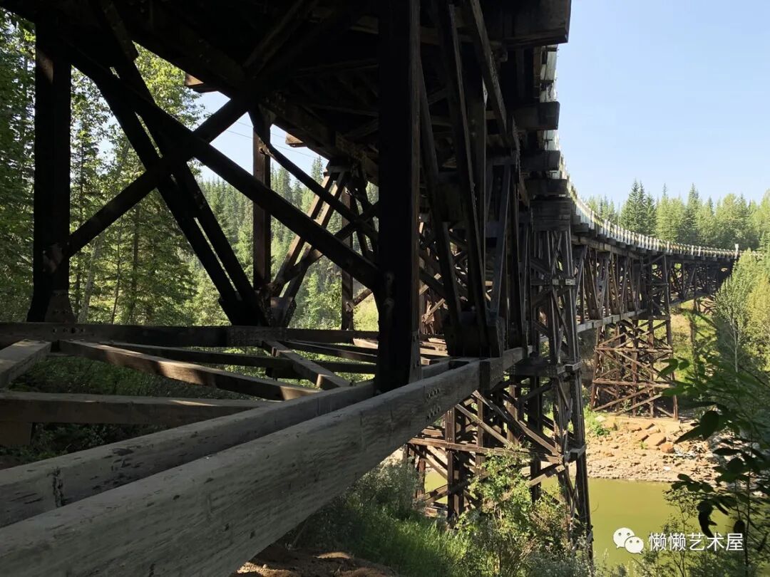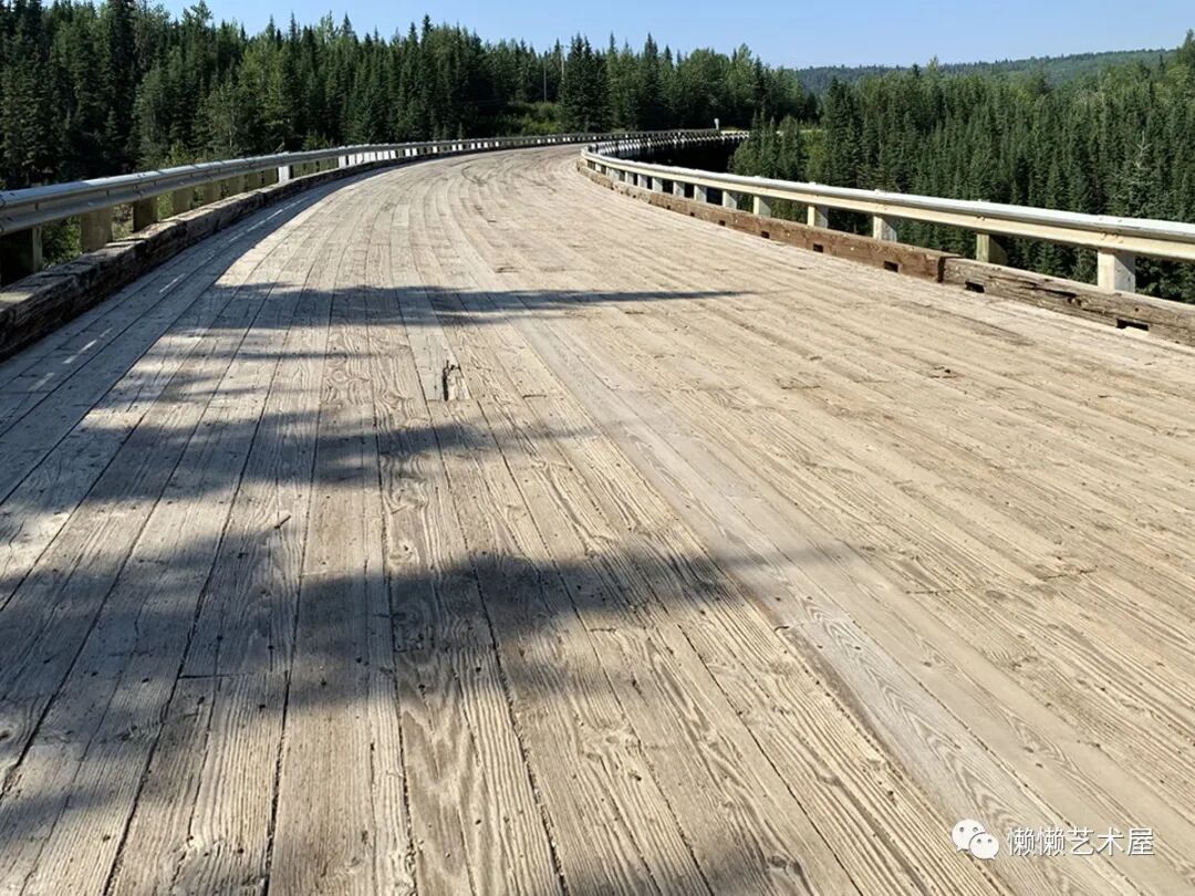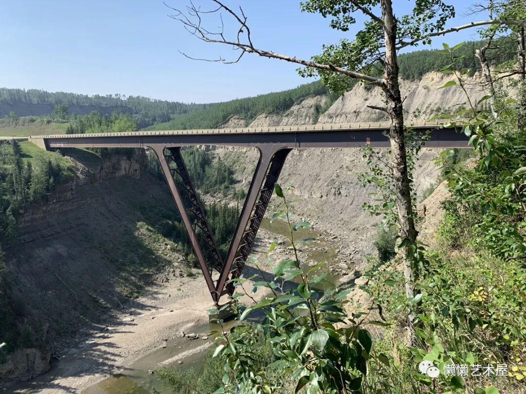 第一个让我们赞叹的点是在阿拉斯加公路上,跨过克斯卡提诺河(Kiskatinaw River)的两座桥,一座是老路上的老桥,一座是改道后的新桥。