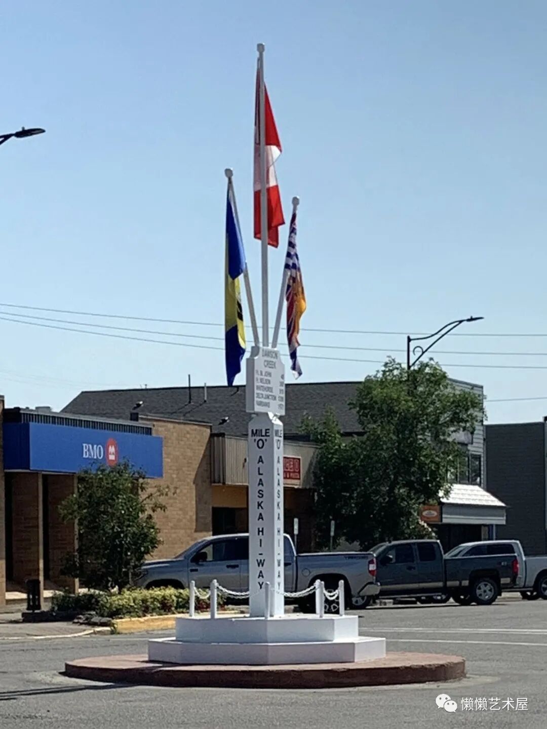 阿拉斯加零公里标志物有两处,一处在马路的中间,可能那是原来真正的起点;一处在美术馆旁边,是象征性的标志物。