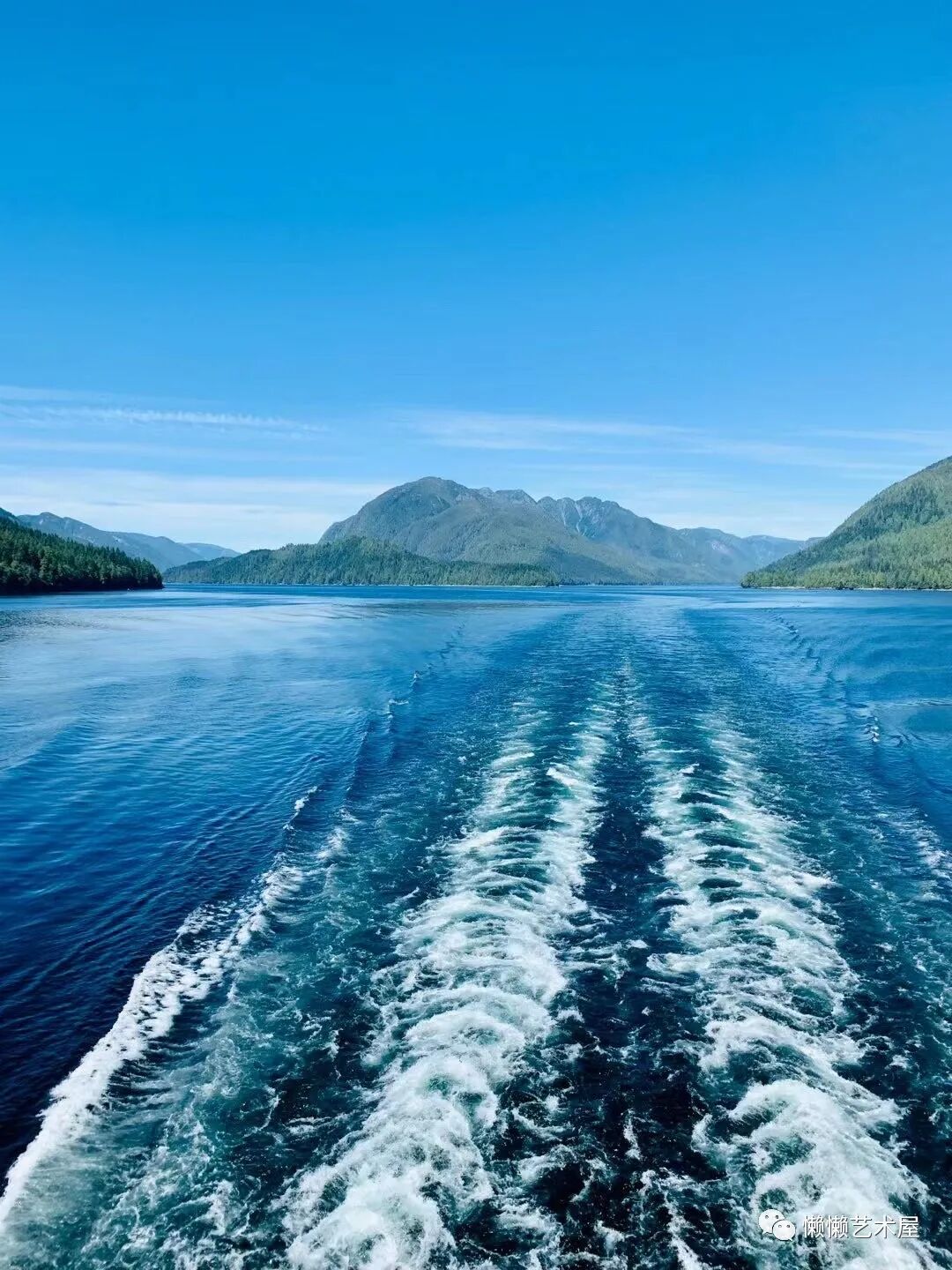 坐在尾部甲板的座椅上,游客们看着渡轮掀起的浪花,以及渐渐远去的山岛,呼吸着清新的空气,吹着徐徐的海风,晒着煦暖的阳光……