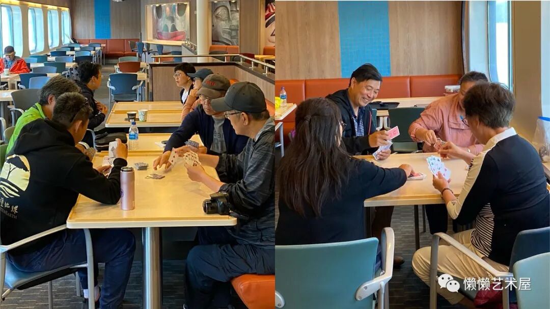 在这一整天的航程中,我们有几拨人凑在一起打牌,打发了相当长的时光。
