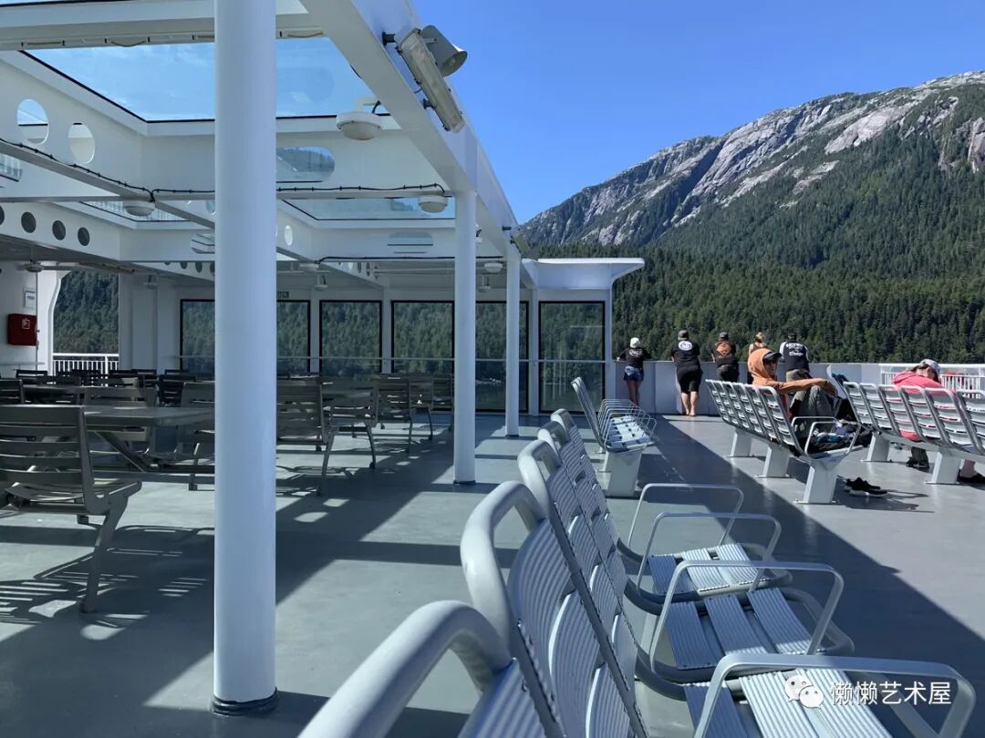 免费且开敞的甲板在两侧和尾部,尤其是尾部的空间,比较宽敞,而且设置了座椅。