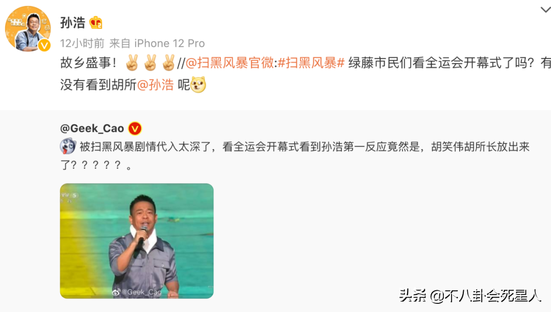 孙浩最近热度挺高,他在《扫黑风暴》里饰演的胡所长,让观众印象深刻。观众还产生“后遗症”: