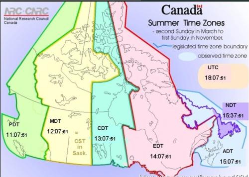 但是加拿大的这6个时区的界限,不是真正意义上的经度来划分的时区,而是由加拿大各个省的政府确定的。