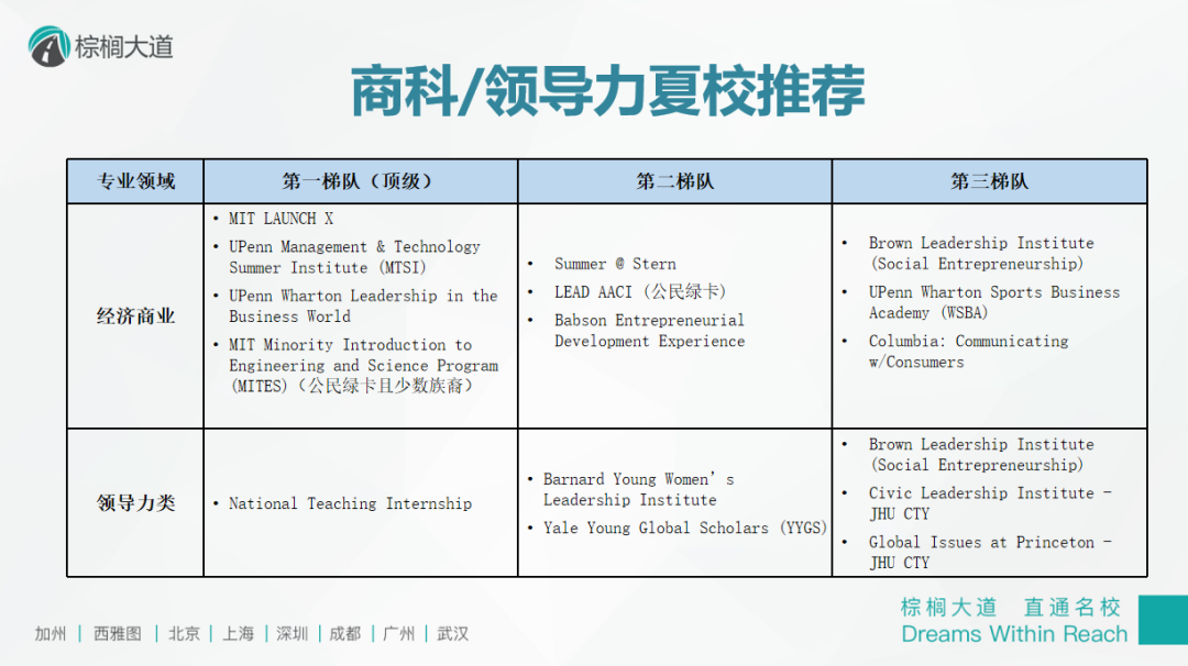 MIT Launch夏校项目、纽约大学Stern商学院夏校项目、AMC数学比赛、FBLA或DECA等顶级全美商赛大家都可以尝试参与。