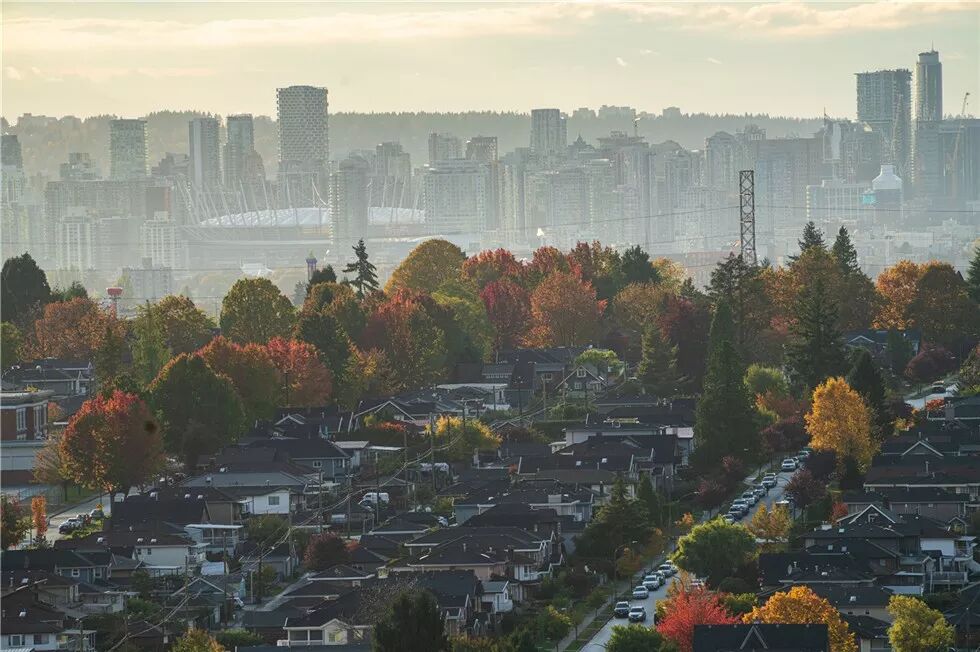 从高处俯瞰大温的秋色,是怎样的体验?在本拿比Capitol Hill,眼前是这样的。赤橙黄绿青蓝,只是少了紫,大温全城的秋色,都灿烂地绽放着。
