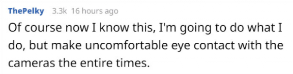 “其实我早就知道民宿里藏了一堆针孔摄像头。管它有没有,反正我还是做我原来该做的,然后死盯着它,只要我不尴尬,尴尬的就是别人。”